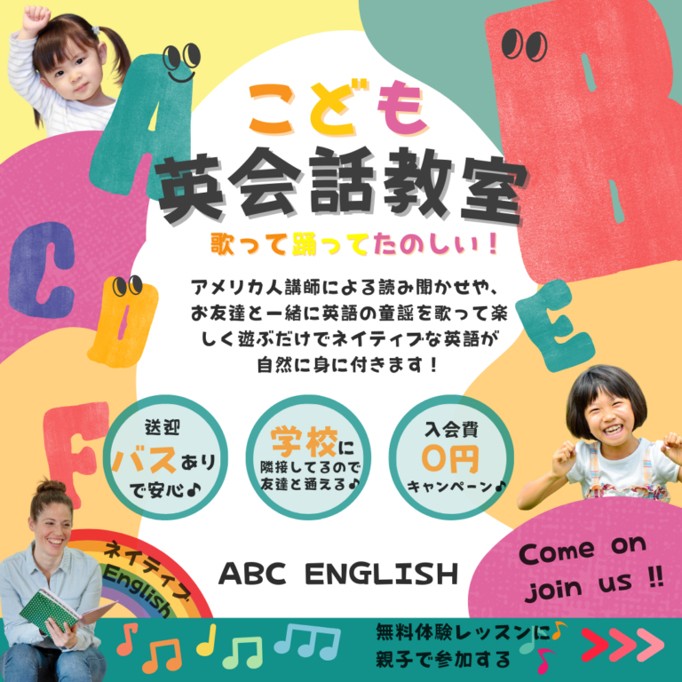 【ターゲット】子供に英会話を習わせたい親御さん向け【意識したポイント】楽しくネイティブ英語を学べる雰囲気を表現しました。